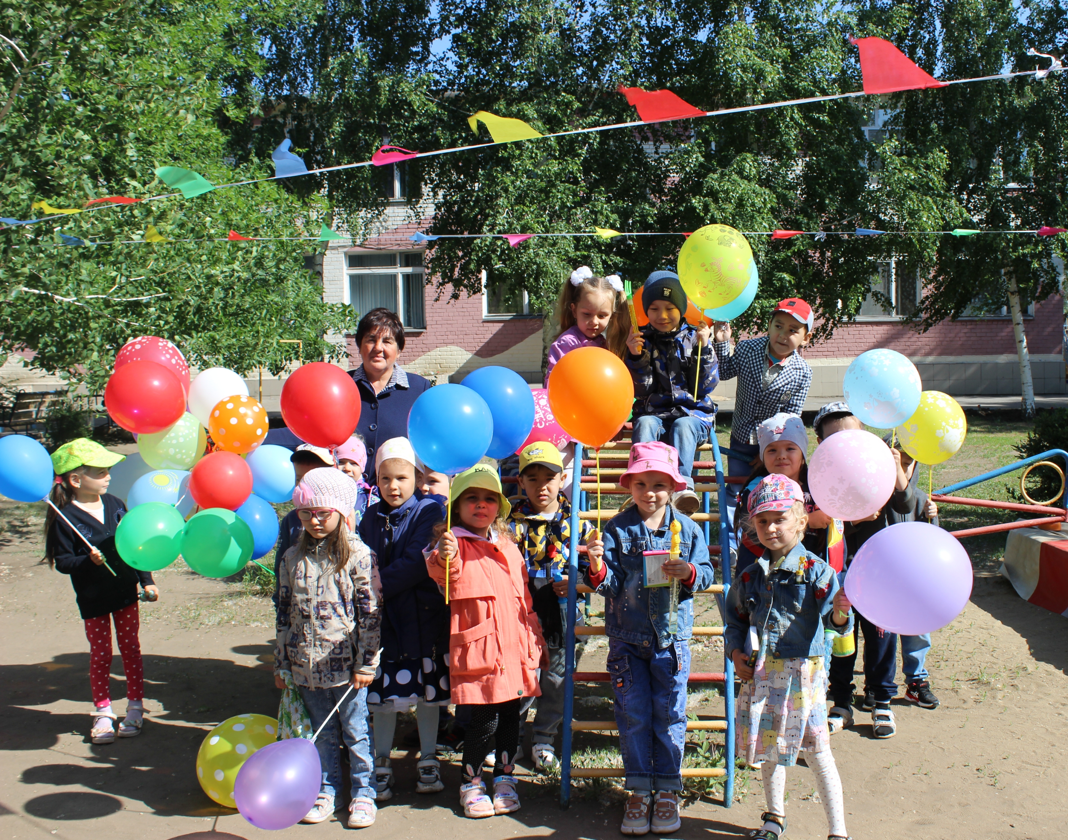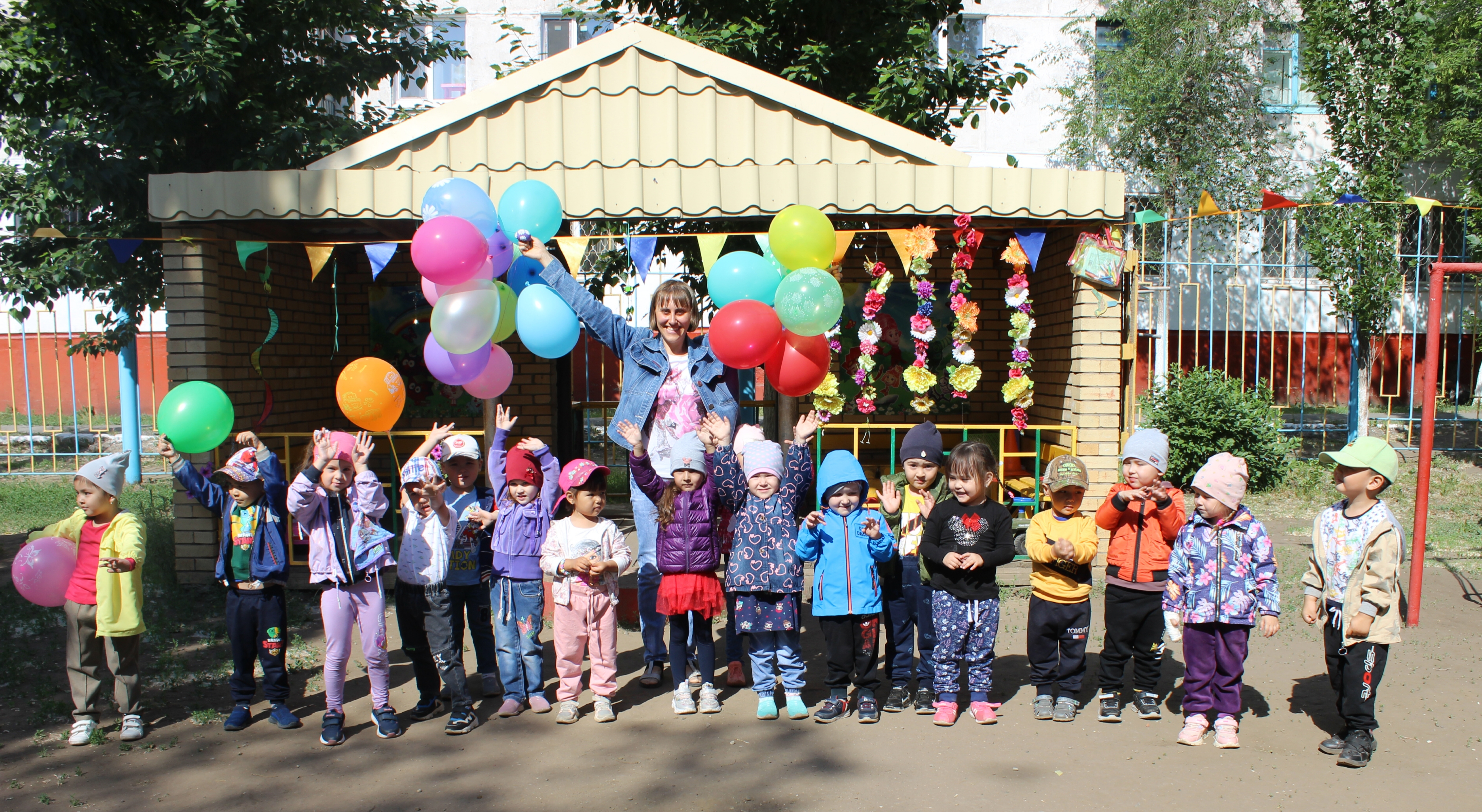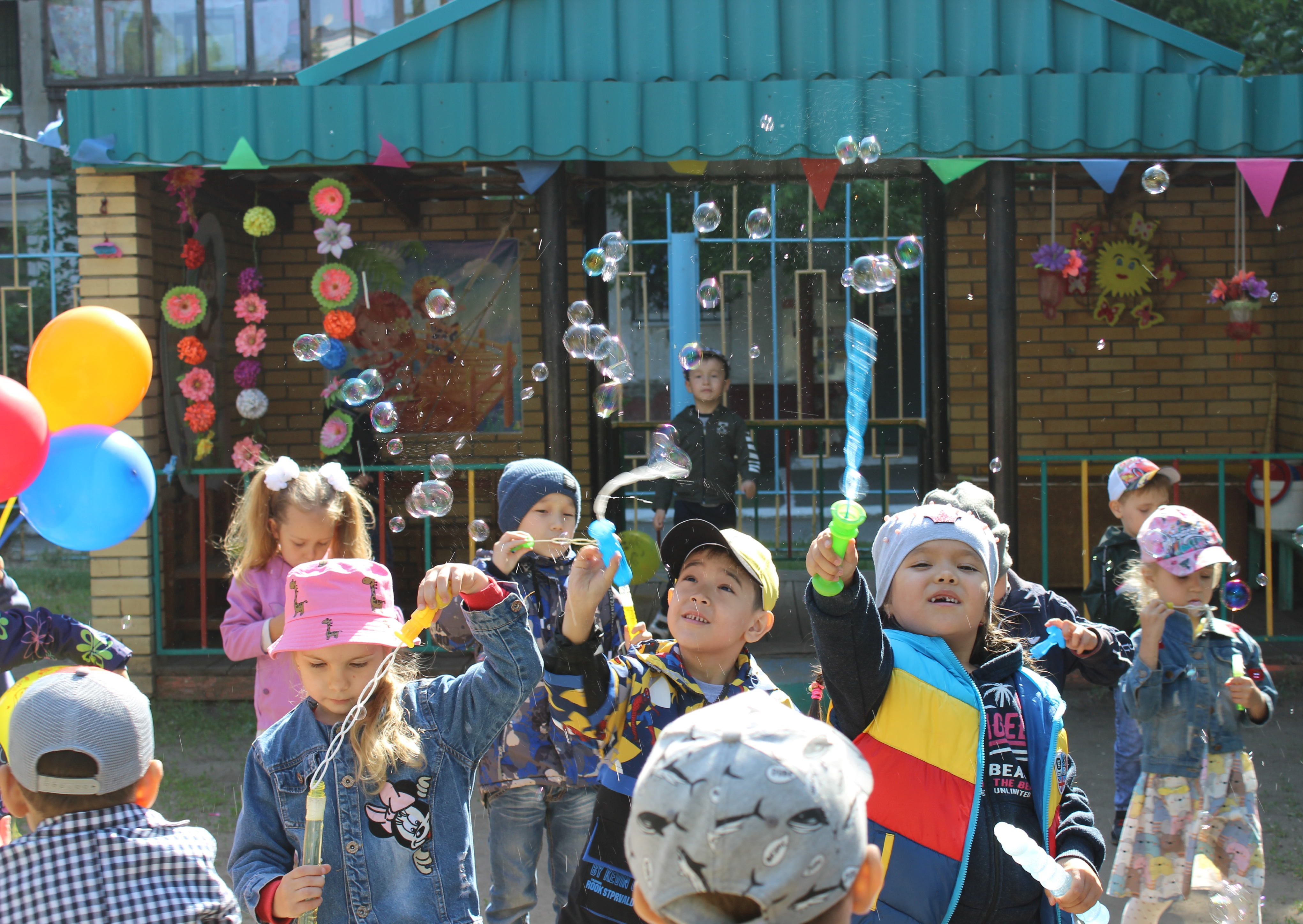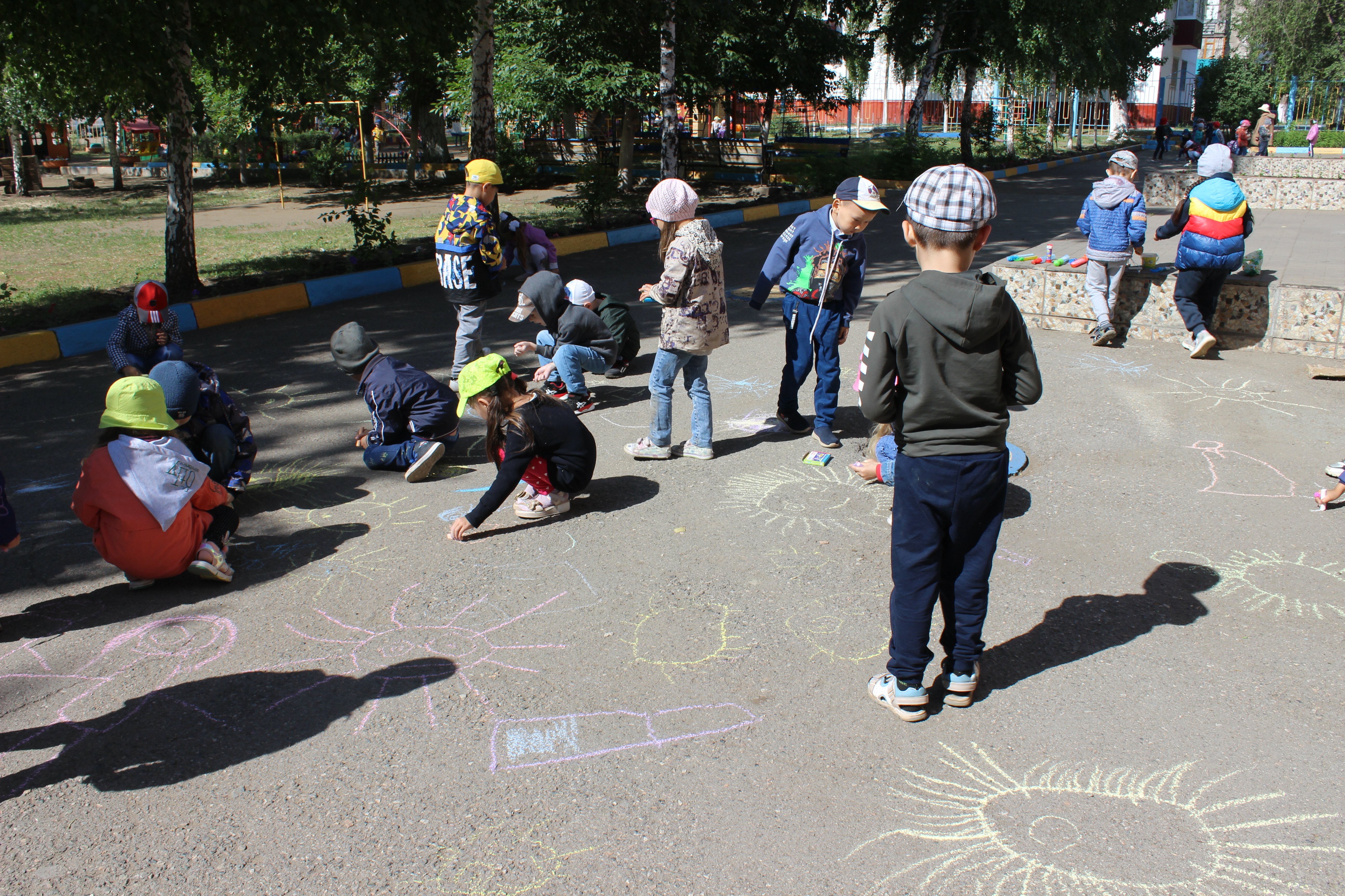 Тәрбиешілер бұл күні балаларға мерекелік атмосфера жасап, көңілді ойындармен, әндермен, билермен және флешмобпен қуантуға тырысты. Мереке асфальтқа түрлі-түсті қарындаштармен сурет салумен жалғасты. Балалардың салған суреттерінде табиғат көрінісі, отбасы мен достарын бейнелеулері көрінді. Барлық суреттер әр түрлі болды, бірақ оларды «Бақытты балалық шақ» тақырыбы біріктірді. Балалар көп әсер алды, бүлдіршіндерге күн бойы жақсы көңіл-күй сыйланды!