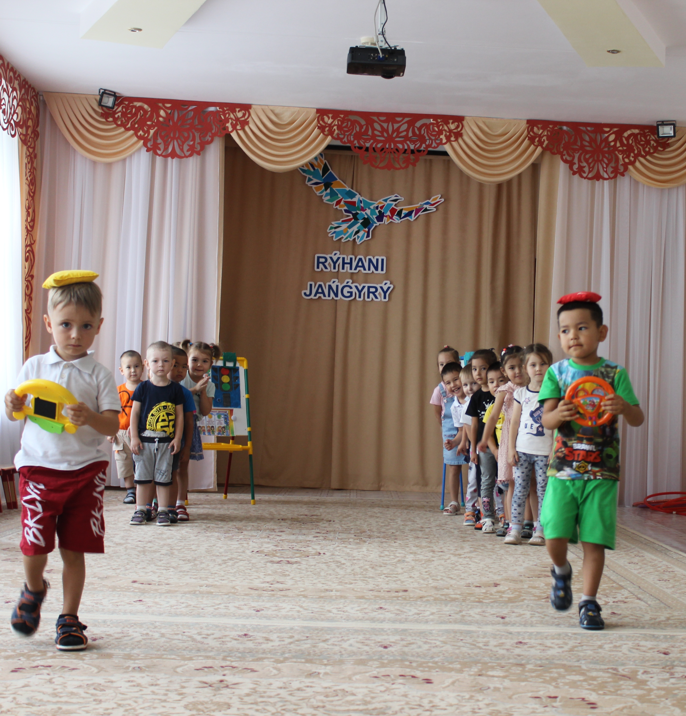 Конкурстар мен жұмбақтар жол белгілерінің негіздерін оқып үйренуге және есте сақтауға көмектесті. Балалар «Қауіпсіз арал», «Зебра», «Жүк машинасы» ойындарының көмегімен жол бойындағы жүріс-тұрыс ережелерін меңгерді. Балалар қуанышпен оларға жол ережелерін меңгеруге көмектескен ертегі кейіпкері Қоянды қабылдады. Барлық балалар ойындарға белсене қатысты, жұмбақтар тапты, командалық тапсырмаларды орындады, спорттық эстафеталарда жарысты және сұрақтарға жауап берді.