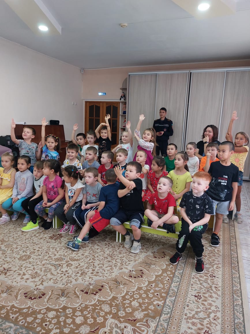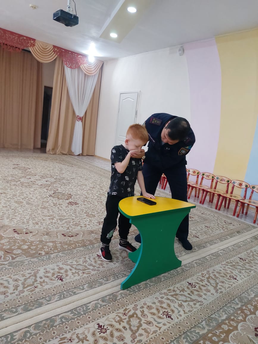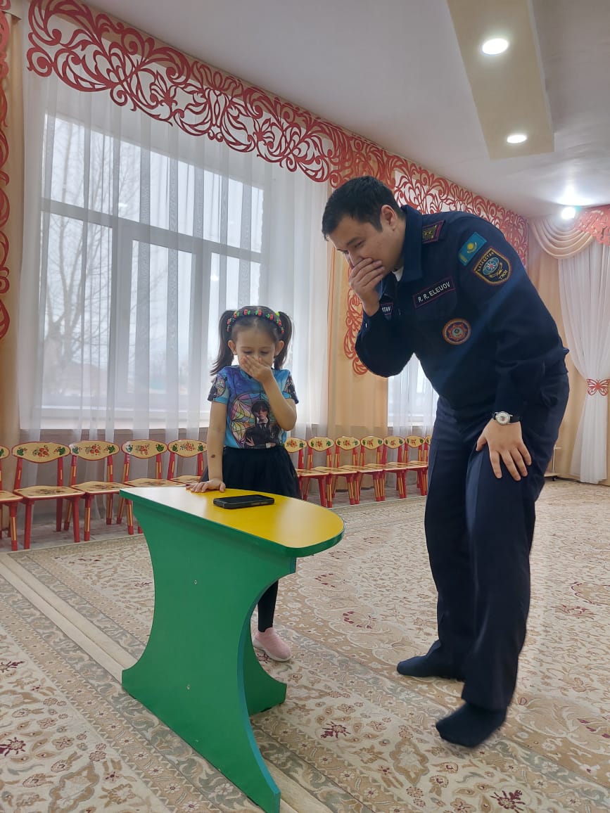 Төтенше жағдайлар жөніндегі аға тергеуші Елеуов Ренат Рашидұлы мен төтенше жағдайлар бөлімінің инспекторы Анафин Алихан Мұратұлы оқушыларға қауіпсіздік негіздері бойынша қызықты әрі танымдық сұрақтар дайындап, балалармен қызықты әңгіме өткізді. Балаларға «сіріңке балаларға ойыншық емес» деген неліктен отпен ойнау өте қауіпті екенін, от көп жақсылық әкелетінін, бірақ бақылаусыз адамның жауыз жауына айналып, қиыншылықтар мен бақытсыздықтар әкелетінін түсіндірді. өрттің алдын алу үшін қандай қауіпсіздік ережелерін сақтау керектігі айтылды . Сондай-ақ, балаларға жедел жәрдем телефондары туралы естеліктер айтылды.