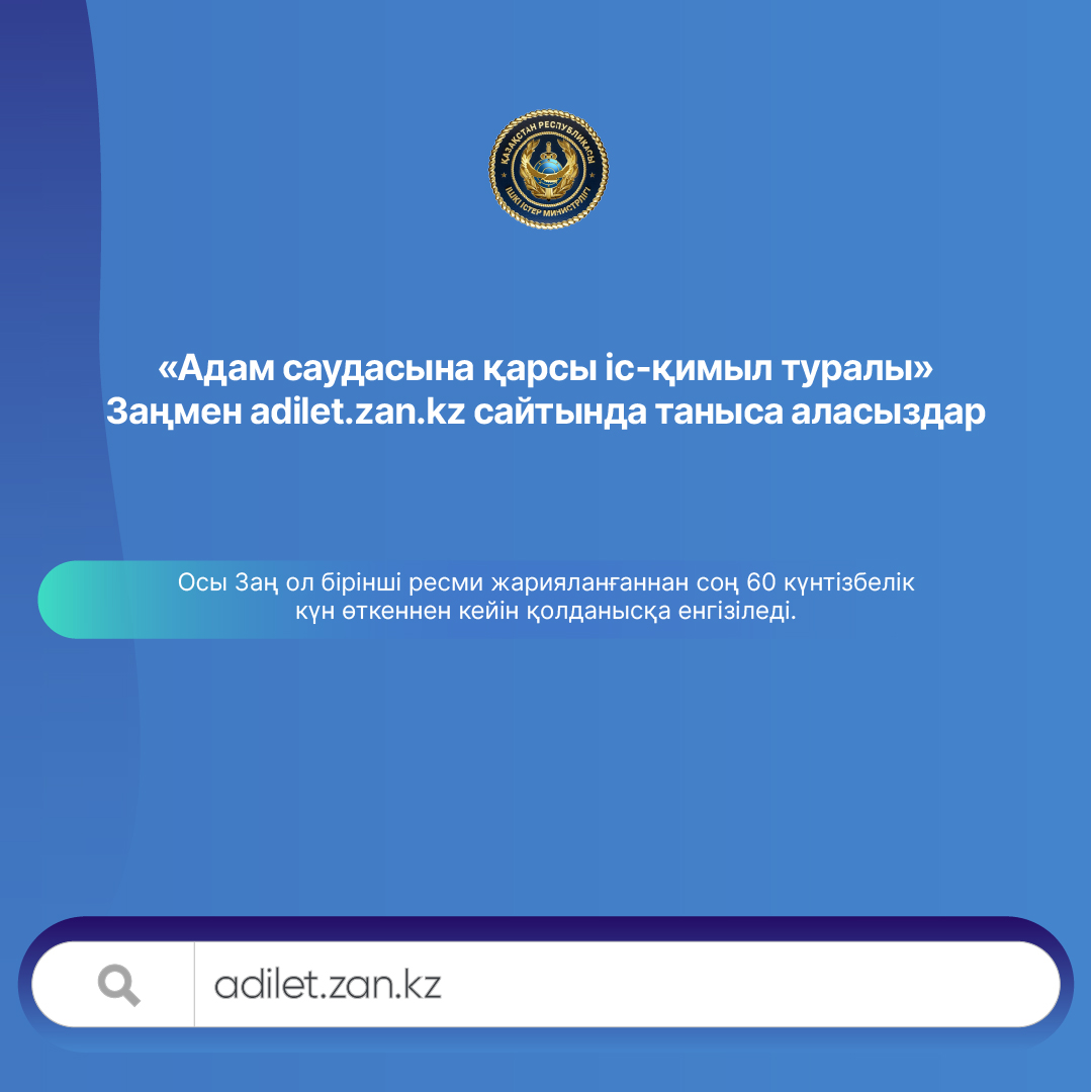 Мемлекет басшысы ағымдағы жылғы 5 шілдеде «Адам саудасына қарсы іс-қимыл туралы» Қазақстан Республикасының Заңына қол қойды, ол алғашқы ресми жарияланған күннен кейін 60 күнтізбелік күн өткен соң, яғни ағымдағы жылғы 5 қыркүйекте күшіне енеді.
