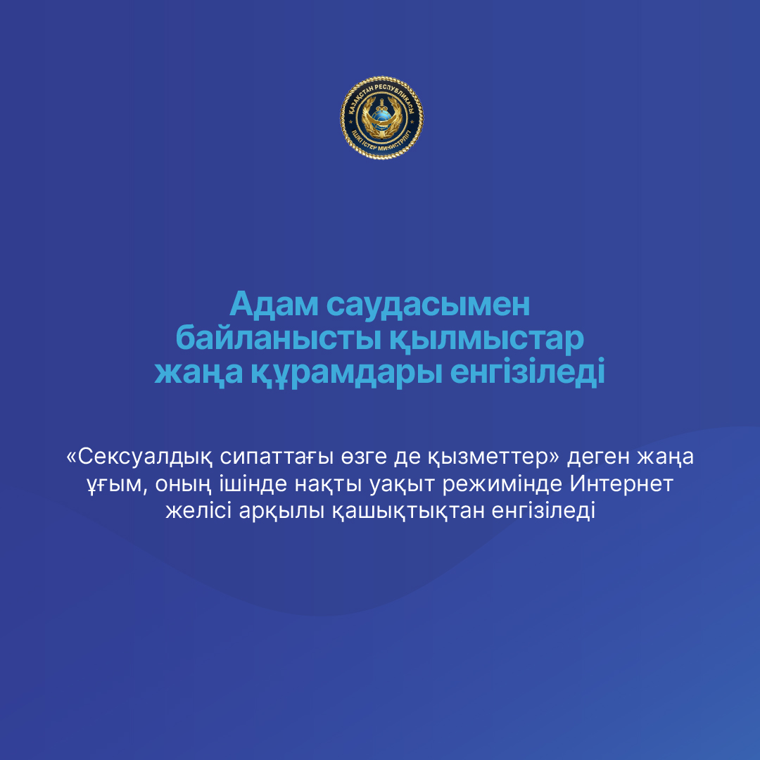 Оның шеңберінде Қылмыстық кодекске қылмыстардың жаңа санаты - адам саудасына байланысты қылмыстар енгізіледі және «сексуалдық сипаттағы өзге де қызметтер» деген жаңа ұғым, оның ішінде нақты уақыт режимінде Интернет желісі арқылы қашықтықтан енгізіледі.