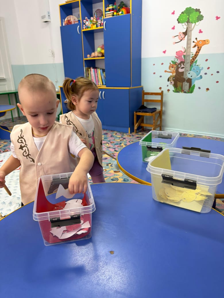 Бұл ойын арқылы балалардың қимыл - қозғалыс координациясы, түстерді ажырату және кеңістікте бағдарлану дағдылары дамиды.