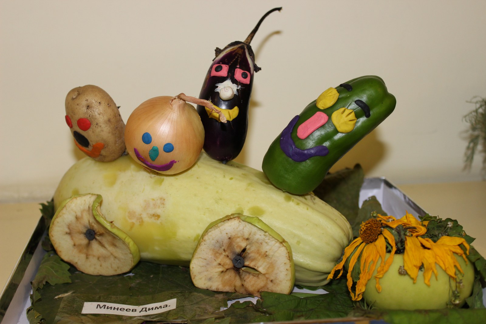 Каждый мог убедиться в том, что детская фантазия не имеет границ! Оказалось, что овощи и фрукты – это не только весьма полезный продукт, который содержит витамины, минералы и прочие необходимые организму вещества, но это и замечательный материал для творчества и фантазии. Это прекрасная возможность провести вечер со своей семьей. Это время, когда родители могут пообщаться со своим ребенком, узнать своего ребенка и просто повеселиться со своим ребенком!