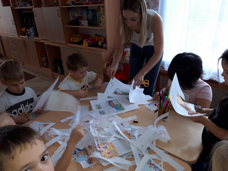 Дети с большим интересом и удовольствием вырезали и клеили страницы книжки. Каждый из них с нетерпеньем ждал момента подарить ее малышу. Не забываемые чувства радости можно было увидеть на лице детей группы «Ертегі», для них это было настоящим праздником. Пусть это маленькое начало будет доброй традицией и такие мероприятия еще не раз удивят малышей .