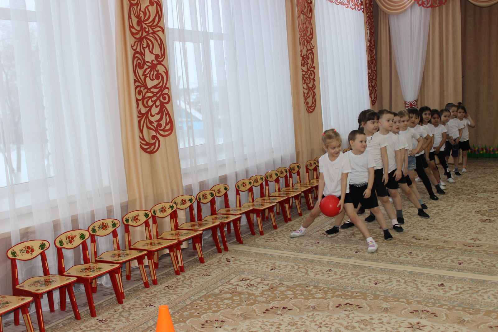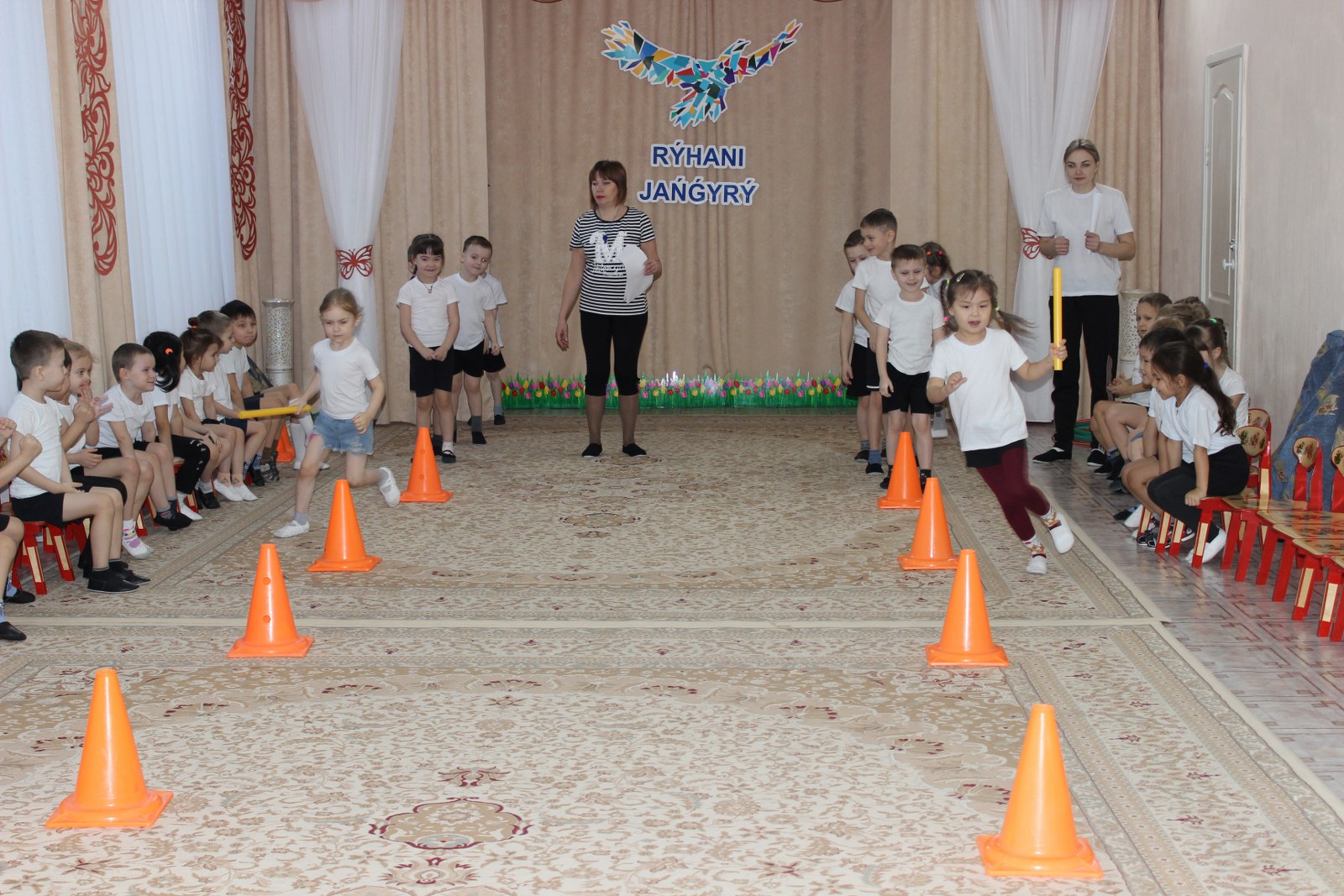 В перерывах между эстафетами, дети отгадывали загадки. В зале царили смех, шум и веселье.