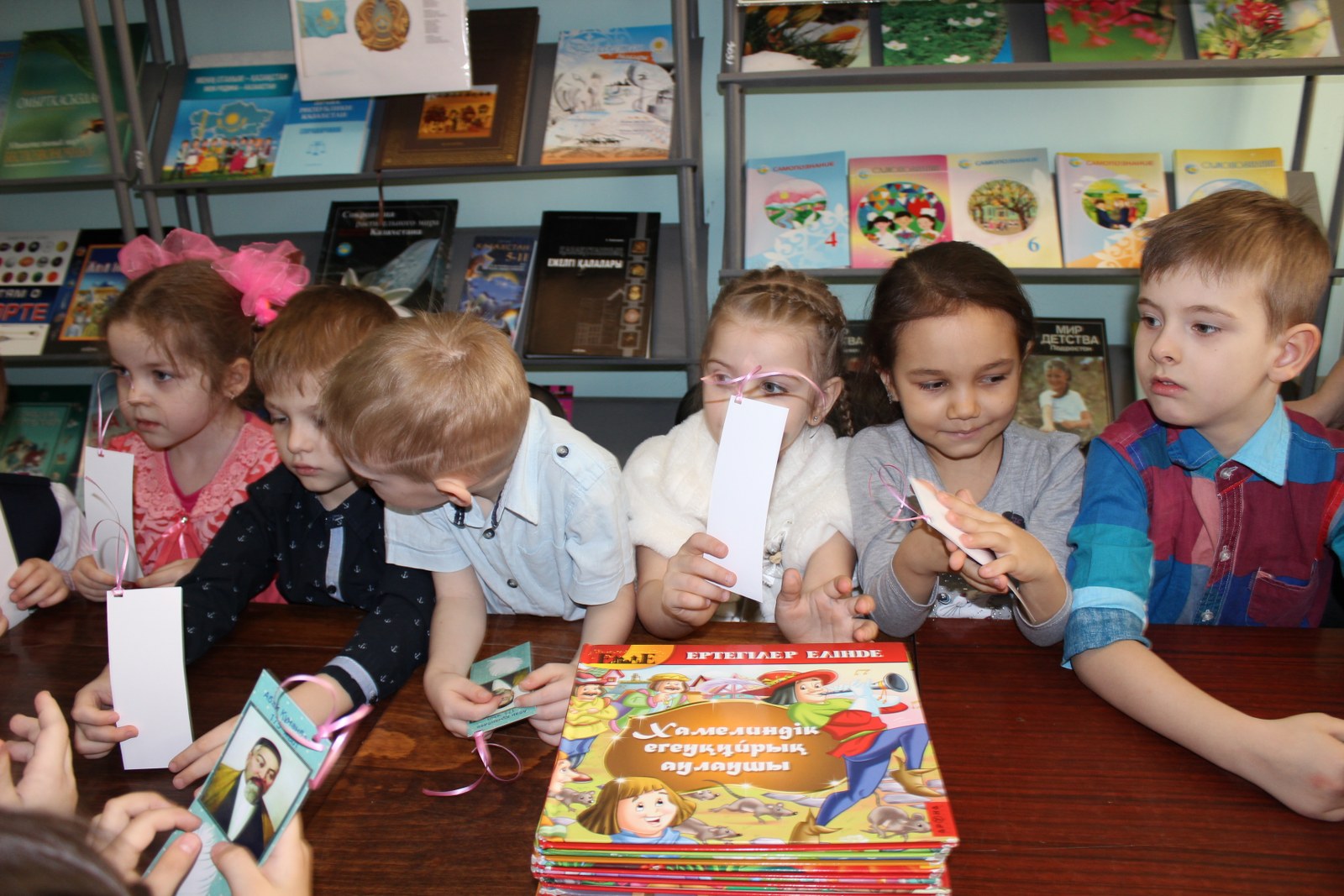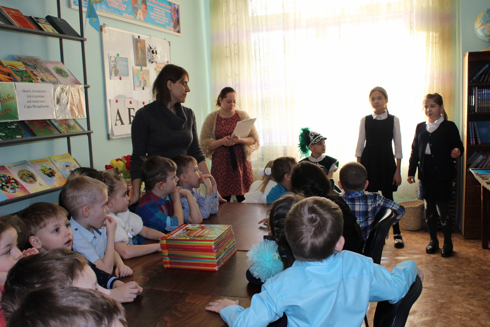 В стенах школы нас всегда радушно встречают, Библиотекарь Кобелева Елена Анатольевна подготовила для детей очень насыщенный, полезный материал по теме. Все было изложено в игровой, доступной форме именно для детей данного возраста. Не обошлось без сказочных героев. Батыр, который пришел на мероприятие принес с собой сборник великого поэта «Абайдың қара сөздері», девочки из старших классов рассказали стихи. Постарались и наши дошколята, которые с достоинством рассказали стихи Абая. Гостям были подарены подарки - закладки для книг. В заключении мероприятия присутствующие с большим интересом познакомились с литературой, представленной на книжной выставке. Мы надеемся, что в памяти детей останутся хорошие воспоминания о походе в библиотеку.