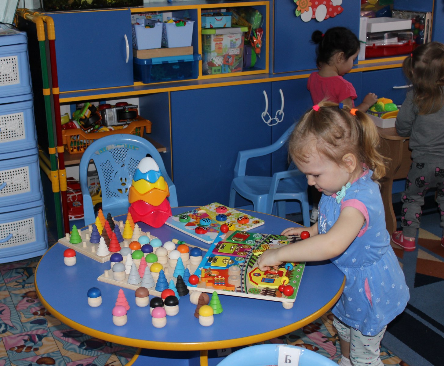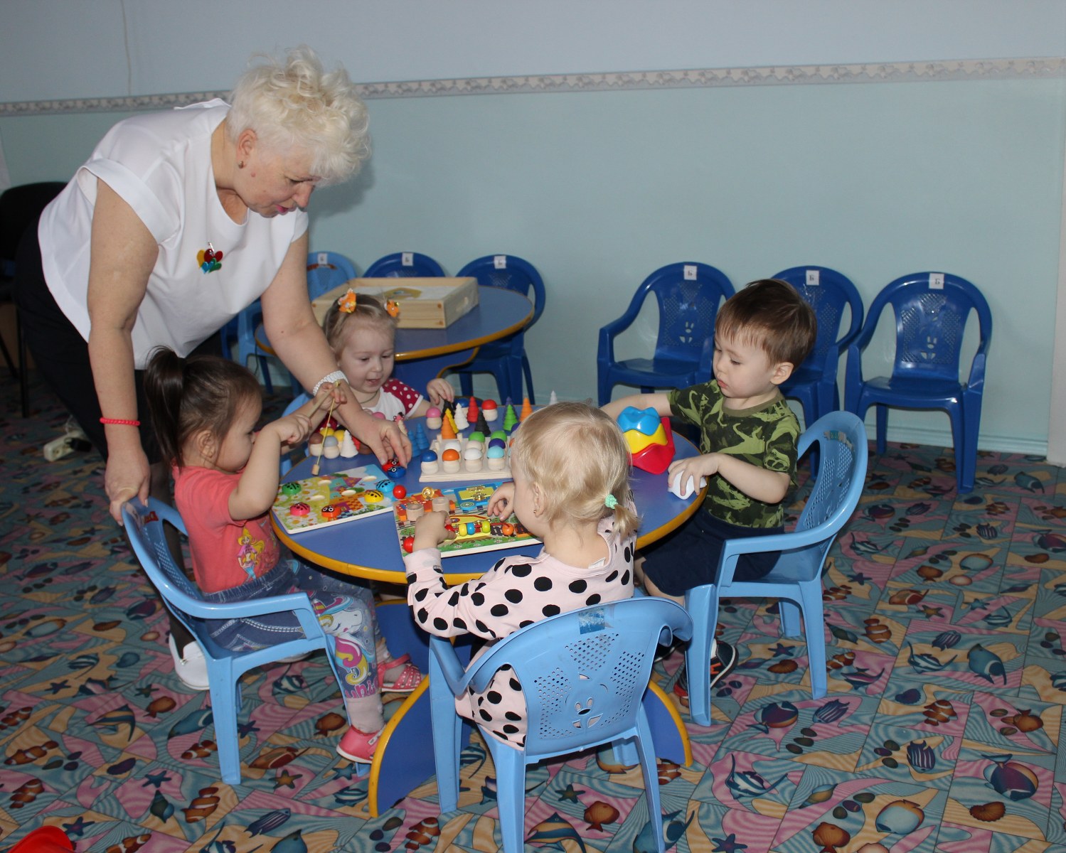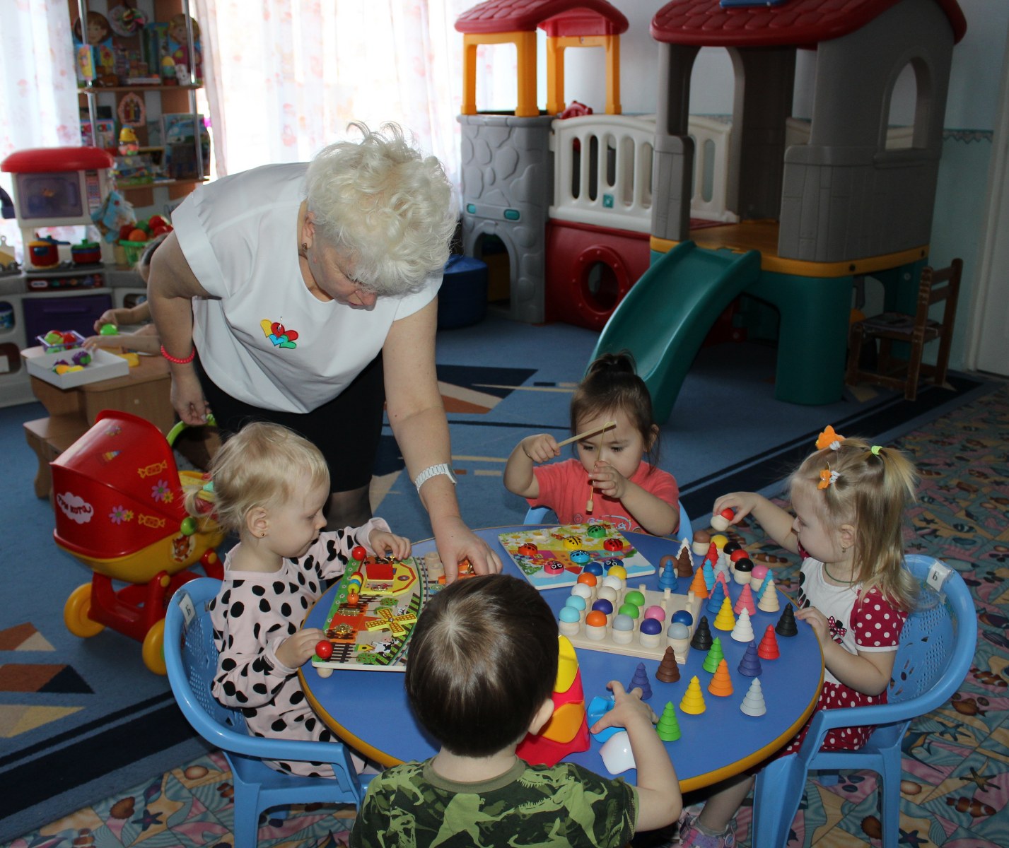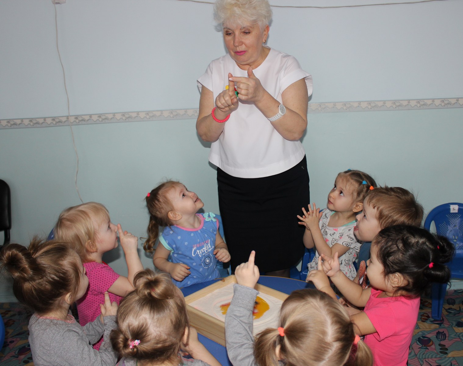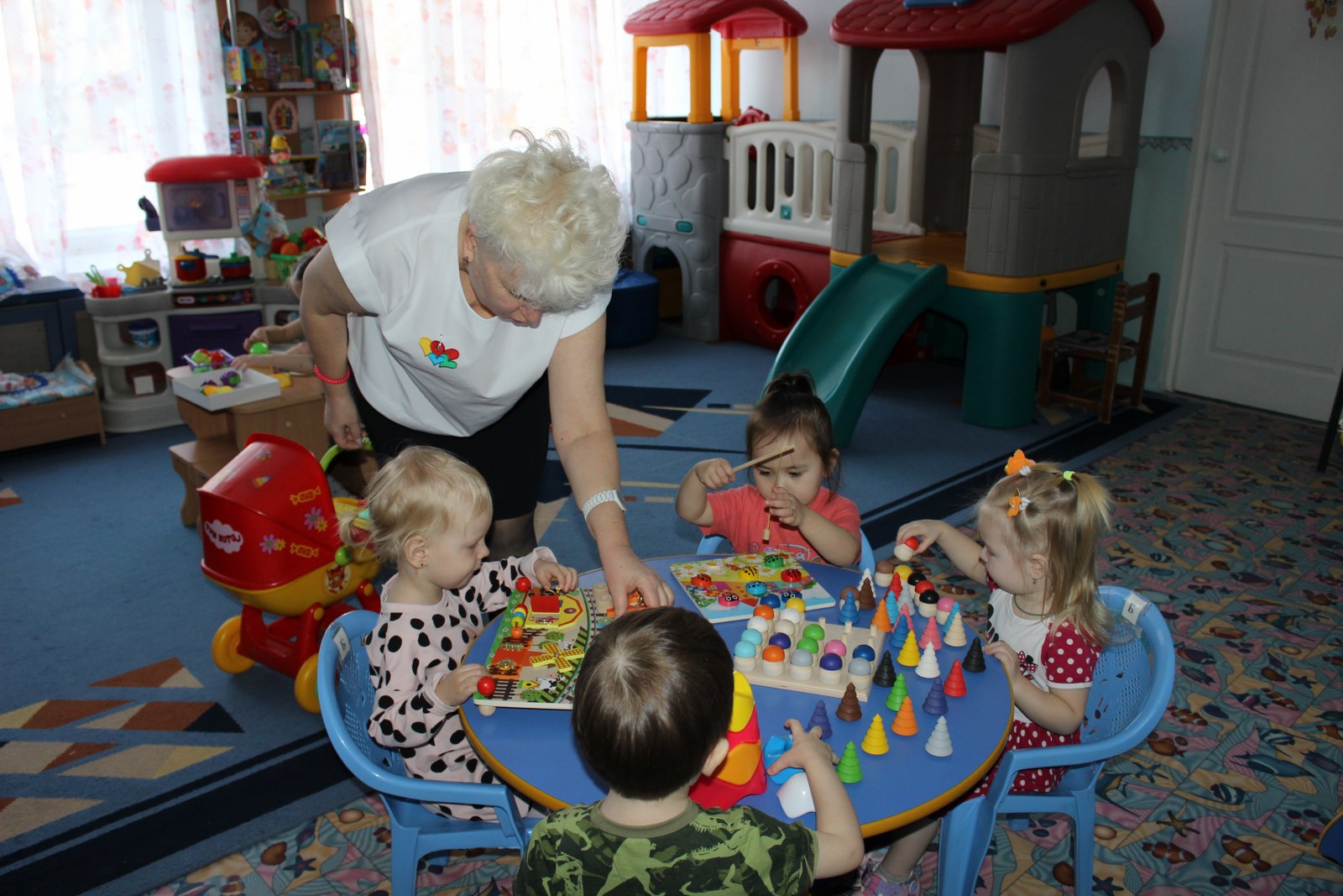 В нашем детском саду КГКП «Ясли-сад №6» акимата города Рудного для всестороннего и творческого развития детей используется популярная методика Вячеслава Вадимовича Воскобовича. Педагог младшей группы «Балапан» Кущий Ирина Николаевна в своей работе большое внимание уделяет этой методике. Игры «Грибная поляна», «Шарики и ступки», «Щипцы ладошки», «Шарики на доске», «Пескограф» и много других используют как в совместной игровой деятельности с детьми, так и в индивидуальной и самостоятельной. У детей появляется неограниченная возможность придумывать и творить. В игре ребенок укрепляет руку, совершенствует координацию, развивает мелкую моторику. Дети становятся более усидчивы, внимательны, у них улучшилась моторика рук, они не испытывают сложностей с усвоением цвета, формы, величины, умением ориентироваться на плоскости. Систематичность использования игр Воскобовича позволила сформировать у детей высокий уровень игровой деятельности.