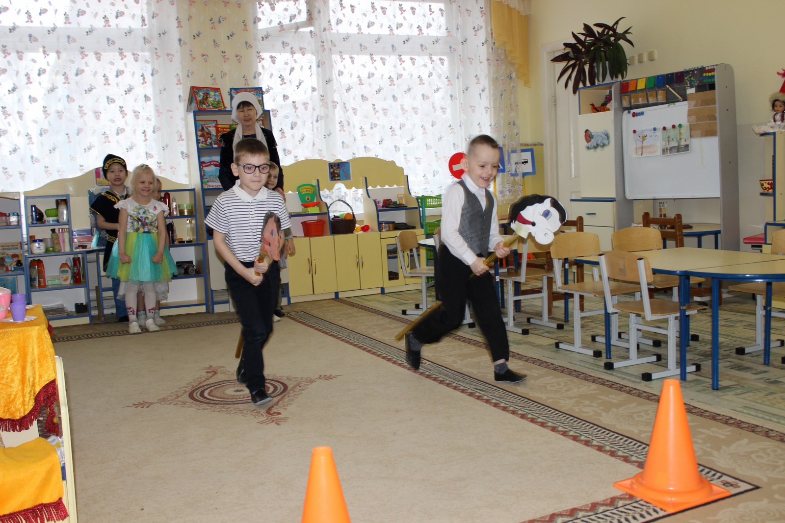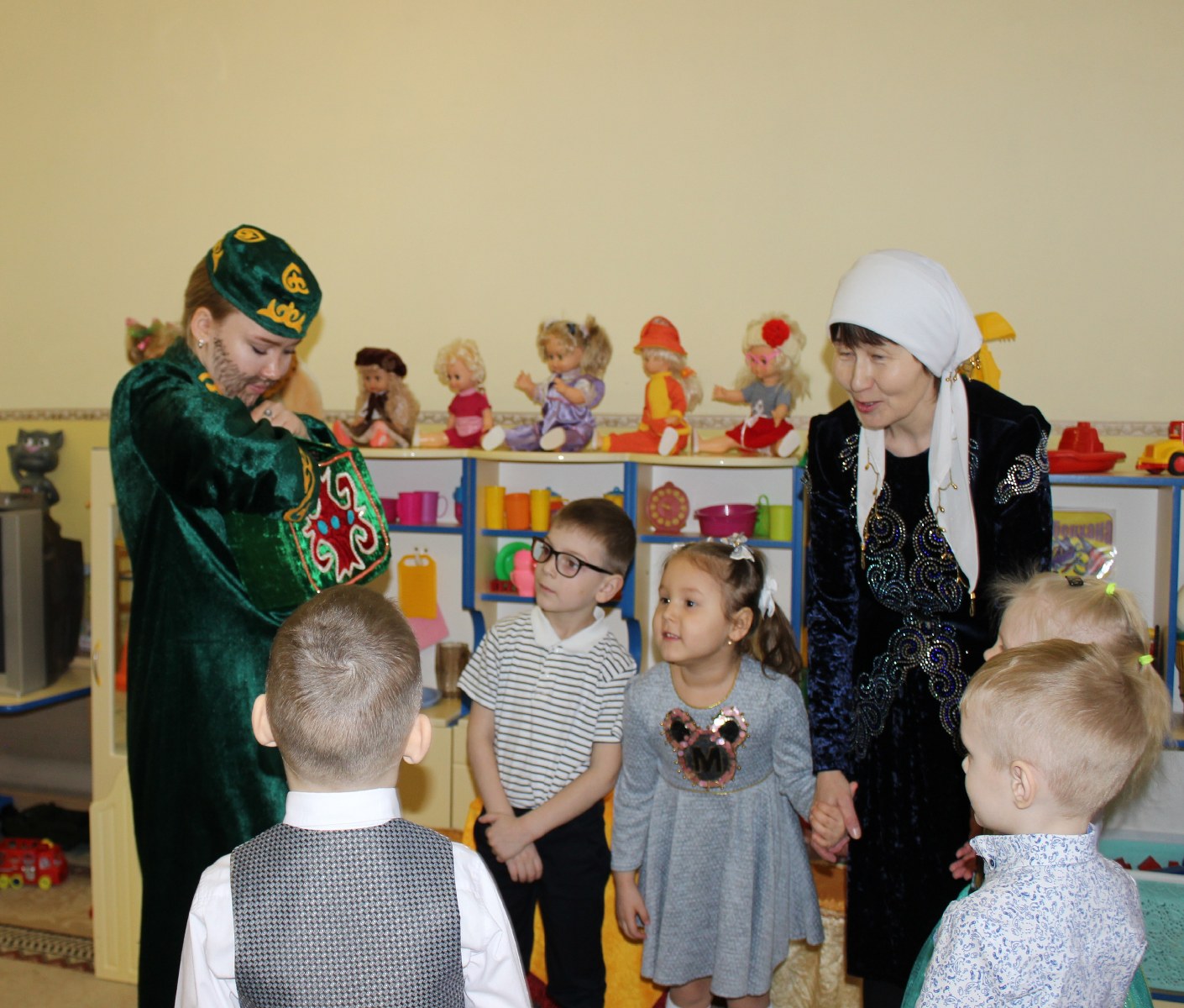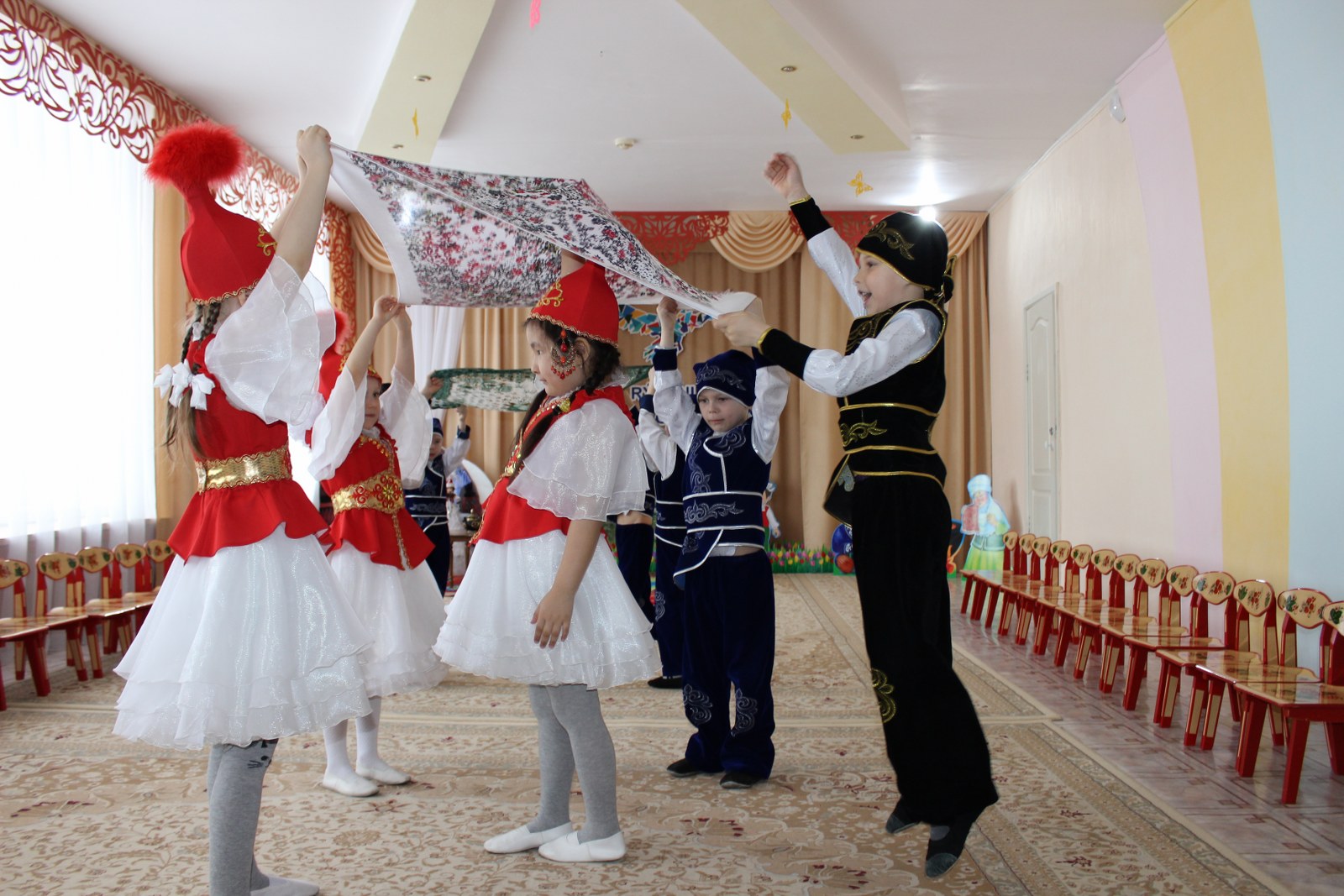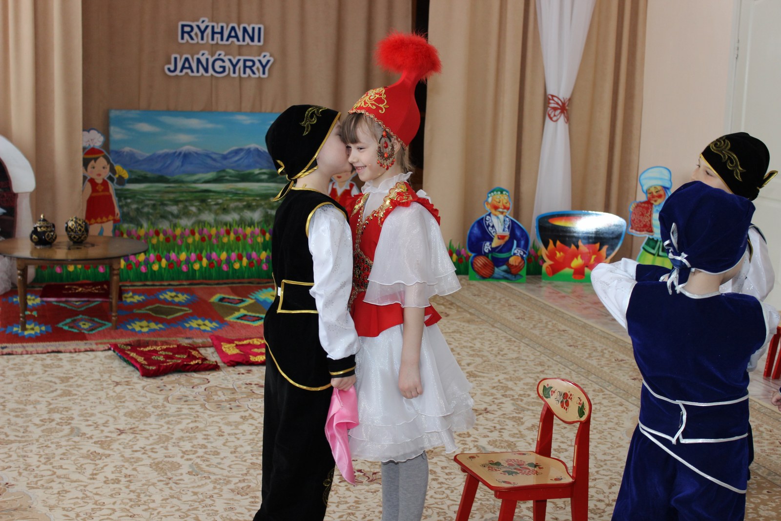Дошколята встретились с героем казахских сказок Алдаром-Косе, который в этот день предлагал детям поиграть в игры, спеть песни и конечно же шутил. С детьми были проведены такие игры как «Построй юрту», «Байга», «Орамал тастау». Другим гостем у ребят была Ажека, которая рассказывала о празднике Наурыз, проводила и объясняла обряд «Тұсау кесу». И какой же праздник без танца «Қара жорға». Детям было предложено станцевать его с асыками, звонко стуча и выполняя движения танца дошколята с удовольствием и с успехом справились с заданием. Во время праздника в саду царила атмосфера добра, веселья и радости. Дети остались очень довольны, хотелось бы, чтобы таких дней у нас было побольше. Наурыз құтты болсын!
