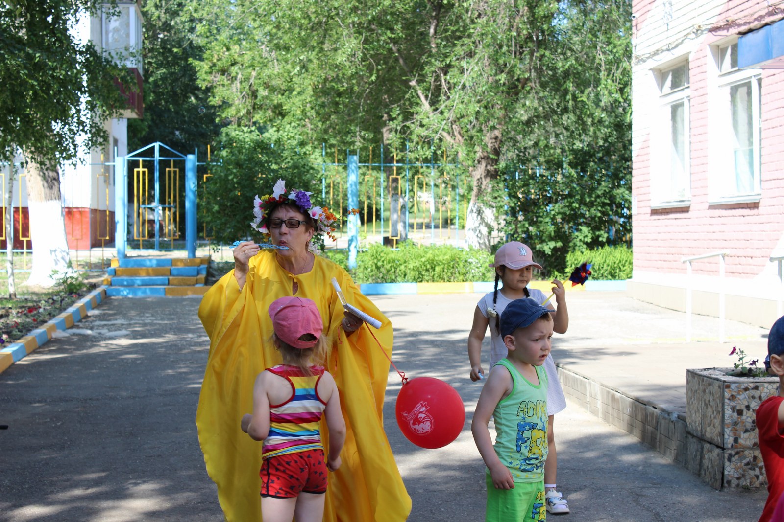 На прогулочных площадках было тоже весело. К детям пришли в гости веселый клоун, Баба-Яга, Лето. Которые с детьми пели детские песни, играли в весёлые игры и эстафеты и подарили детям хорошее настроение. Было приятно видеть радостные детские лица и слышать весёлый детский смех.