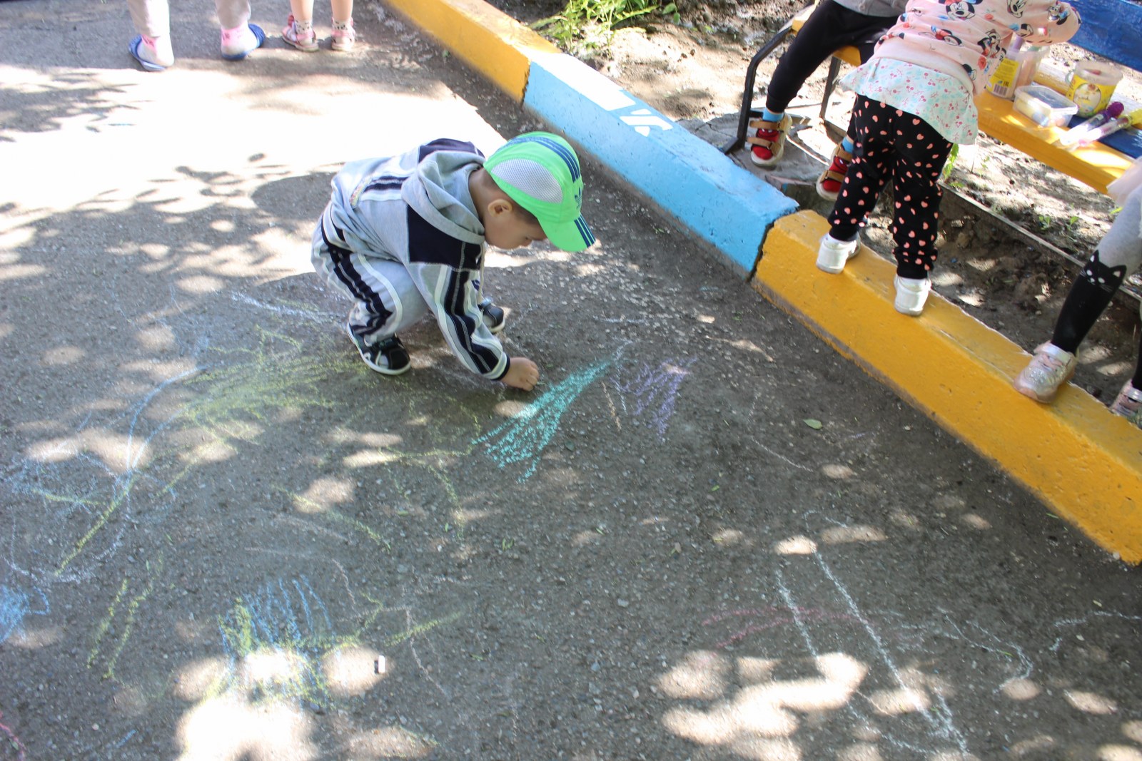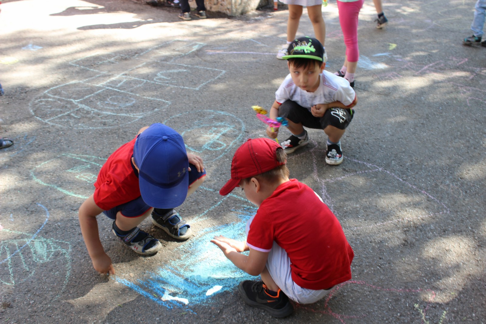 Праздник продолжился рисование на асфальте цветными мелками. В детских рисунках можно было увидеть природу, друзей, родных и близких людей. Все рисунки были разными, но объедены одной общей темой «Счастливое детство»