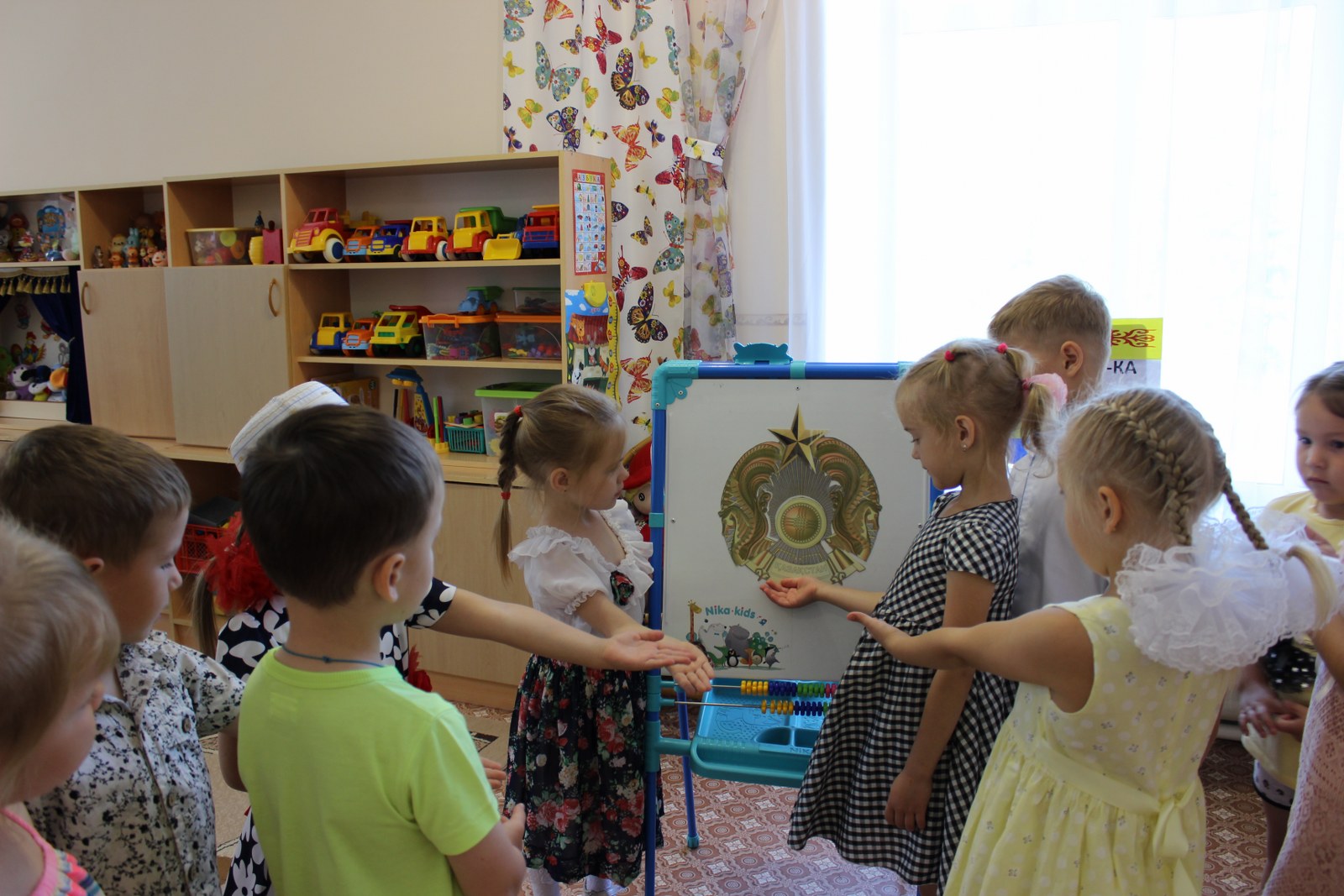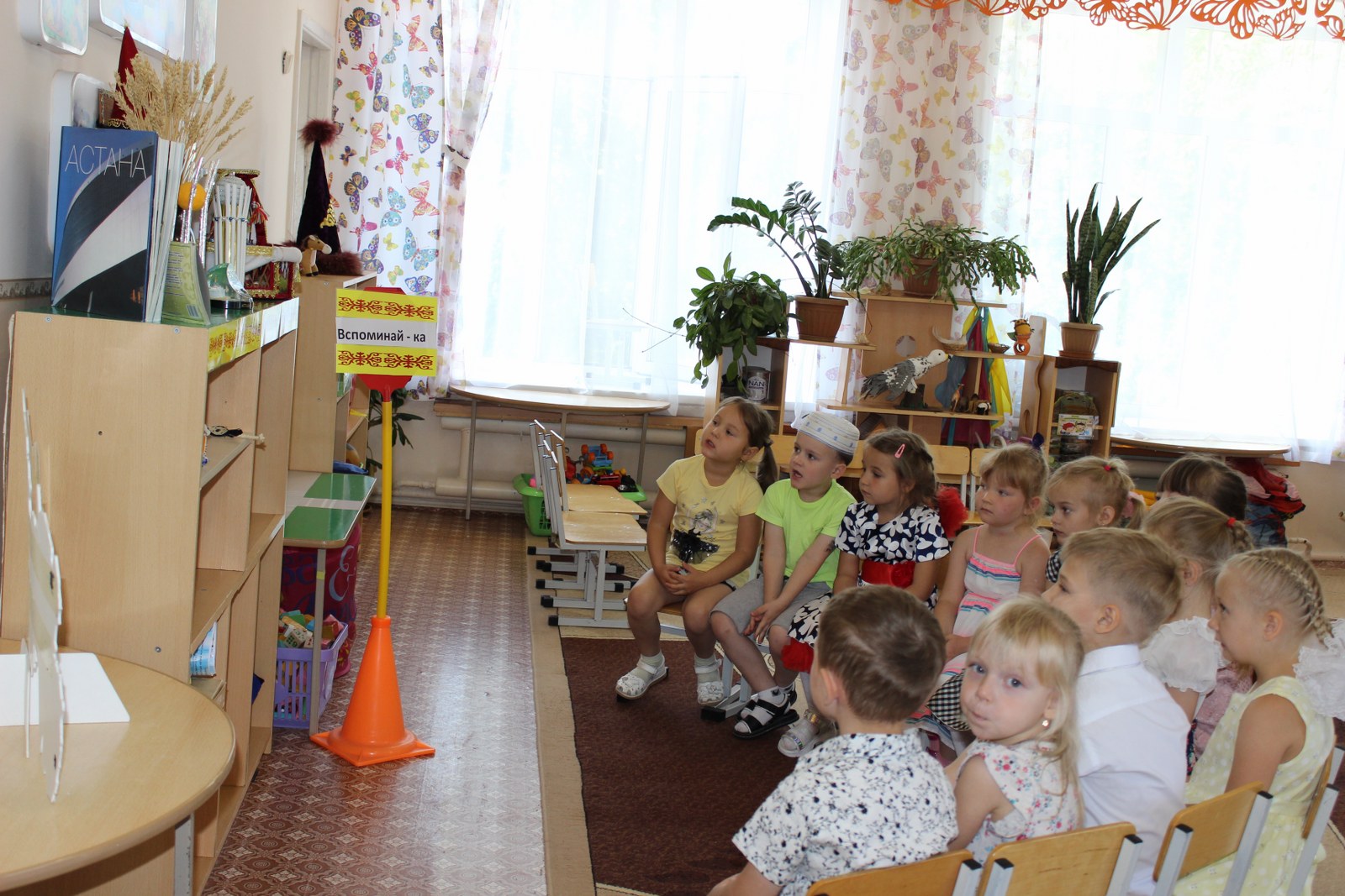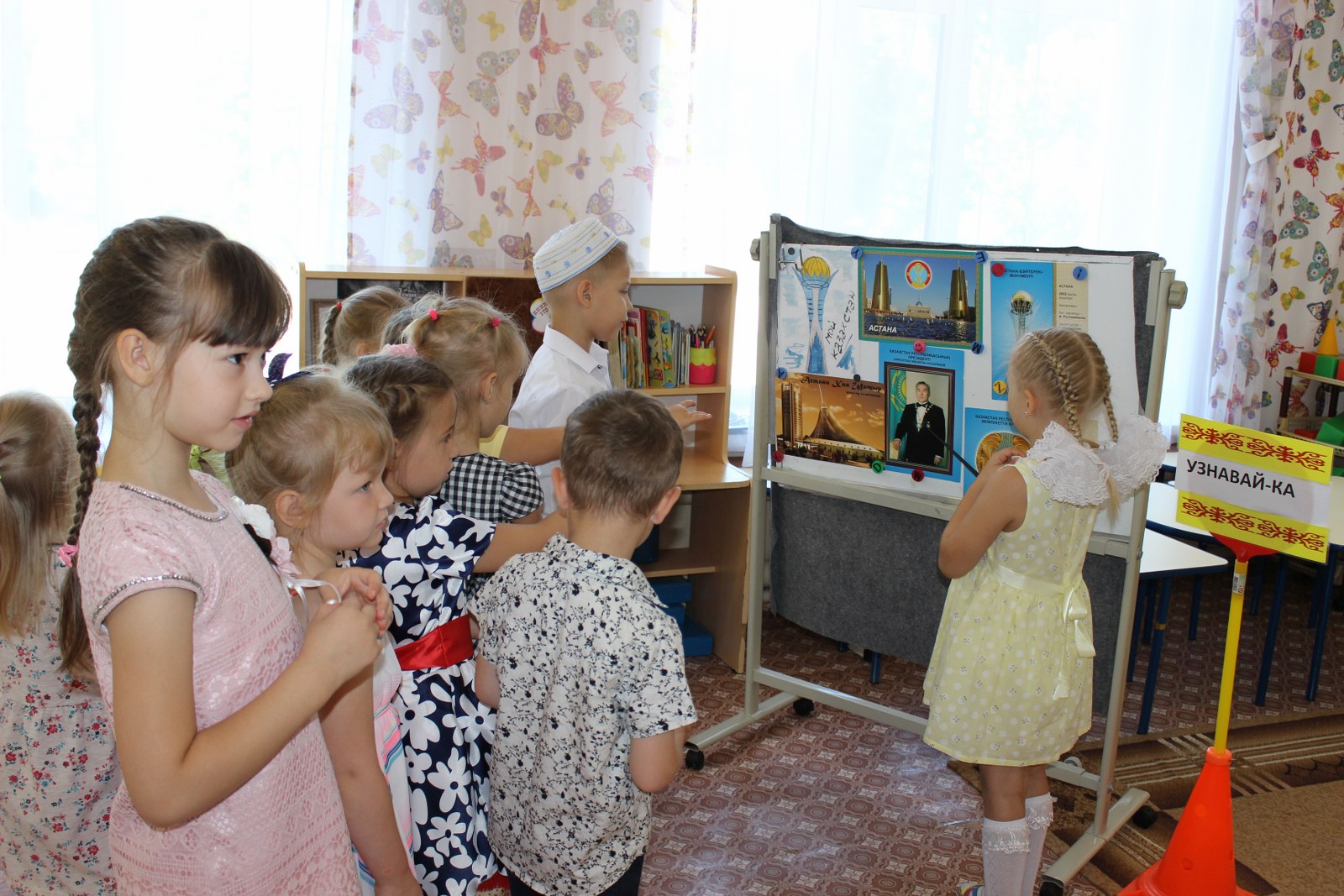 Дошколятам было предложено увлекательное путешествие по станциям «Поиграй-ка», «Вспоминай-ка», «Узнавай –ка», «Составляй-ка». Дети посмотрели видеоролик о замечательном городе Нур-Султан, который славится своими достопримечательностями, поиграли в казахские национальные игры, танцевали, пели песни, рассказывали стихи. Также в этот день дети и родители приняли активное участие в выставке рисунков «Мы Родиной нашей зовем Казахстан».