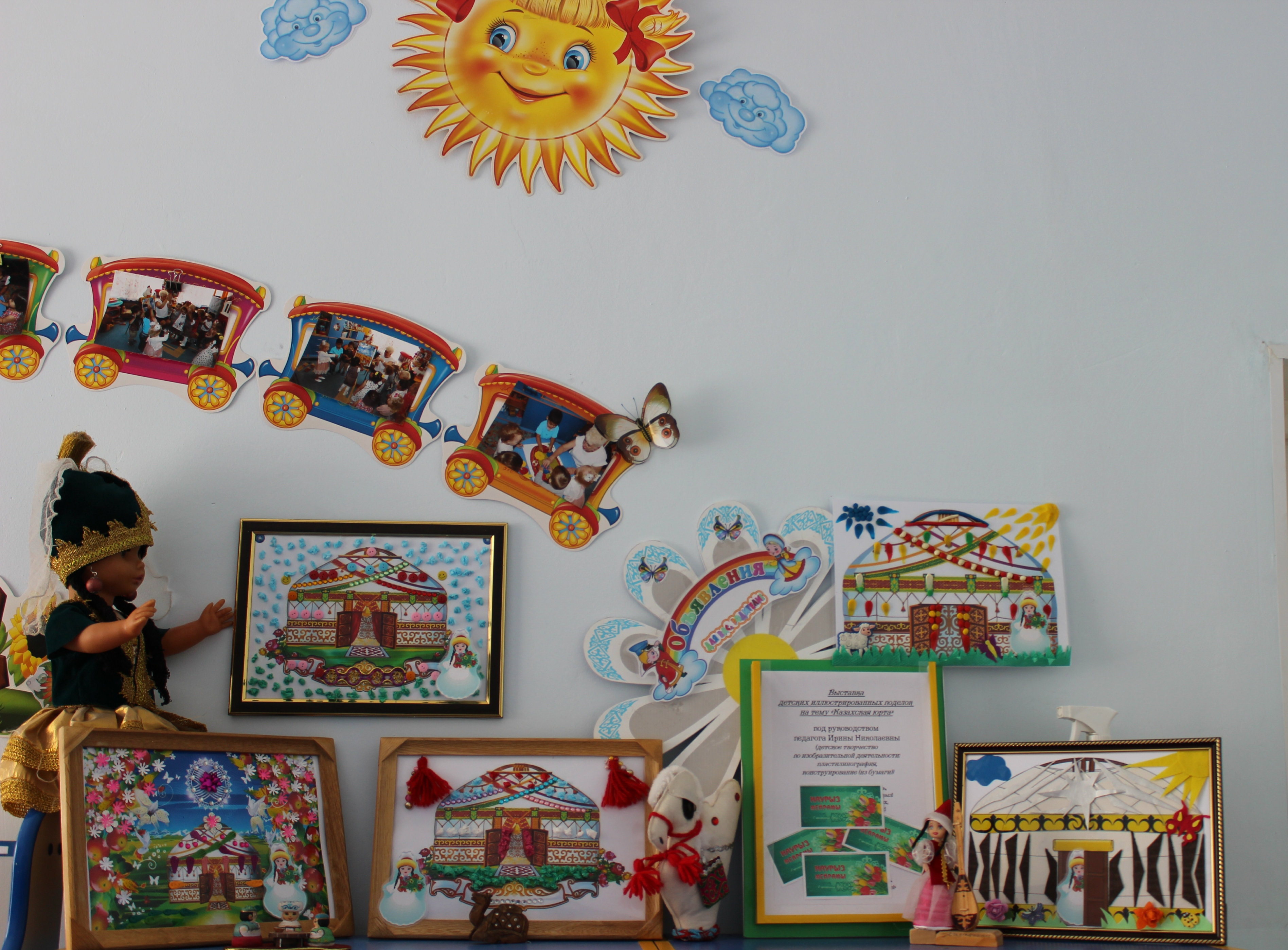 Все возрастные группы приняли авктивное участие. Были представлены разнообразие картин на темы «Юрта», «Национальная одежда и украшения», «Национальная посуда», «Джайлау», «Казахстан Родина яблок и тюльпанов».