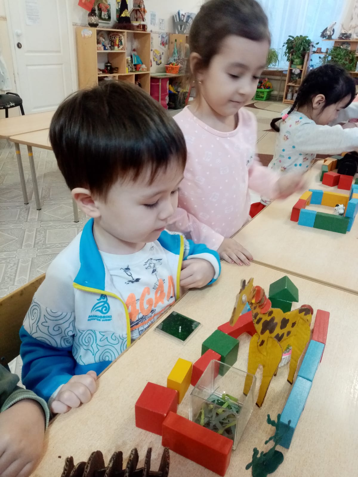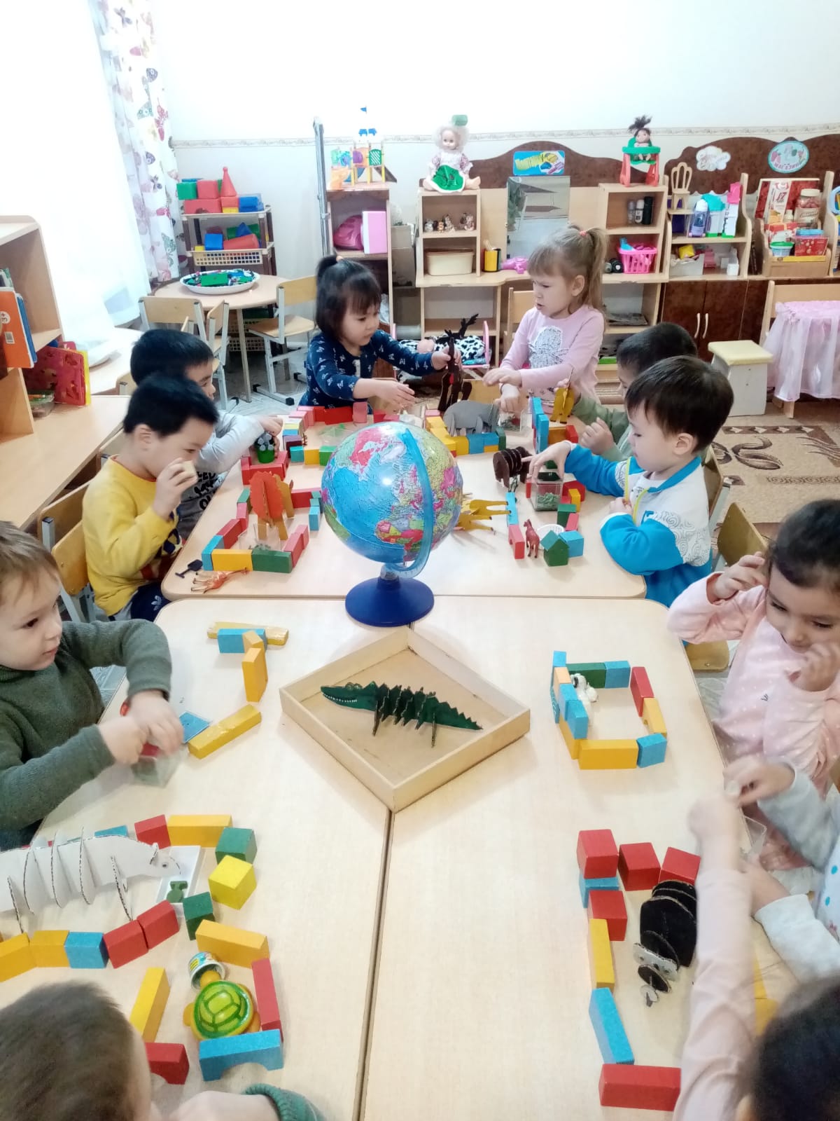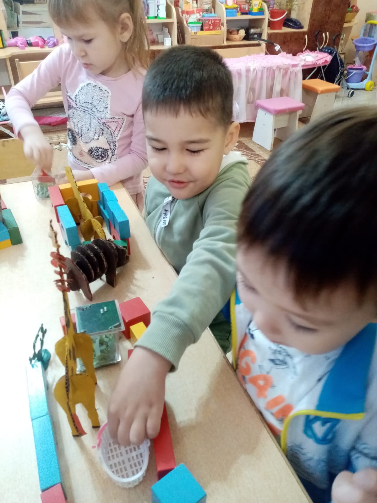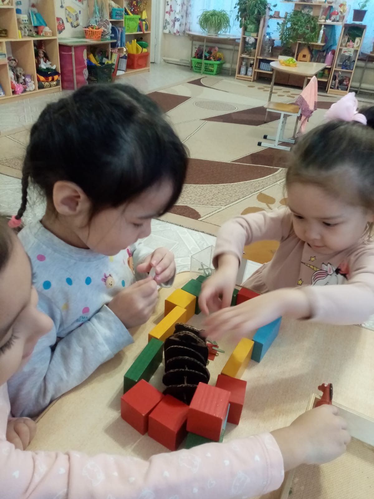 Старшая группа «Шеберлер» КГКП «Ясли-сад №6» акимата города Рудного. Занятие по конструированию с использованием игрушек из гофрированного картона.