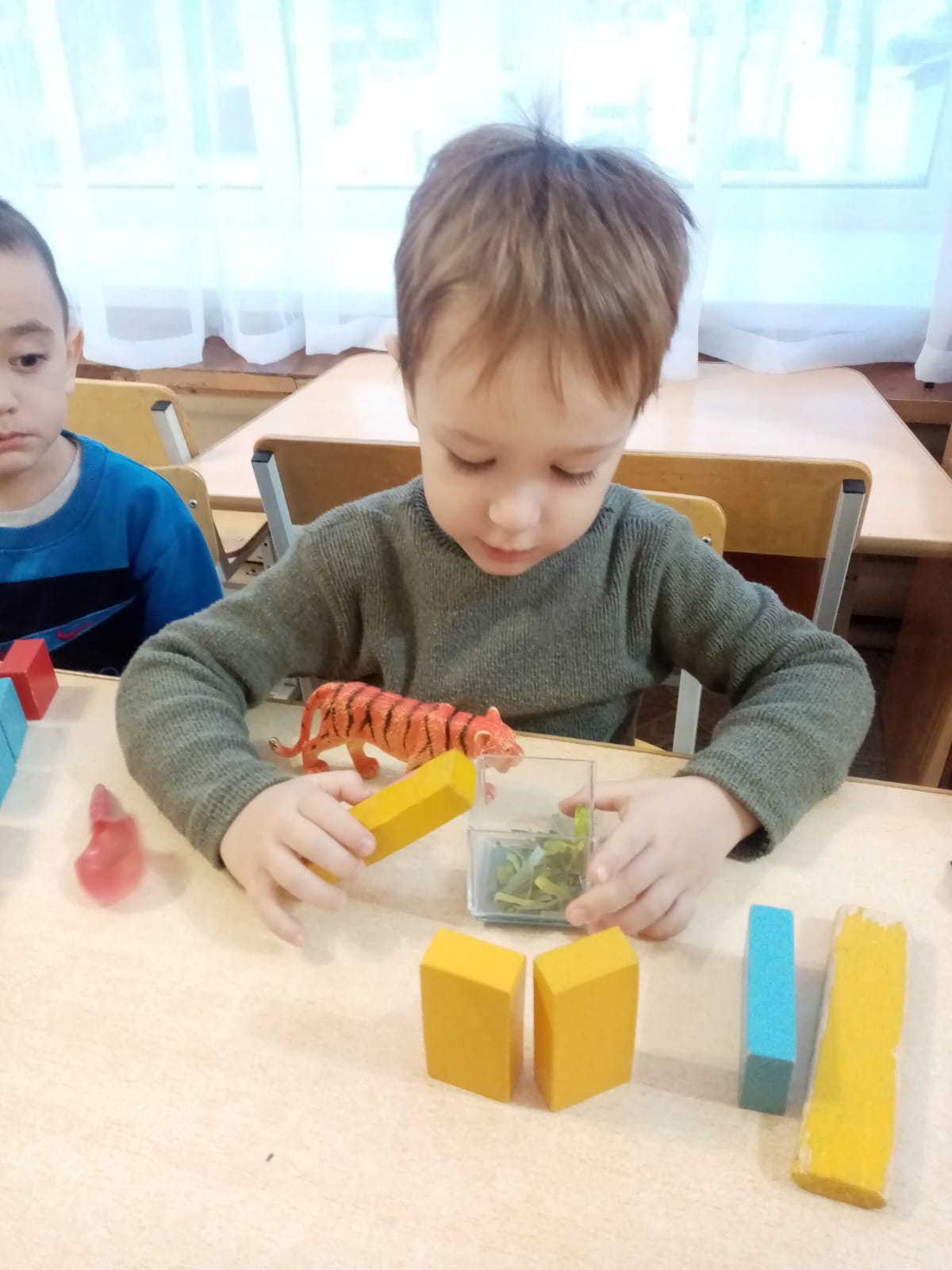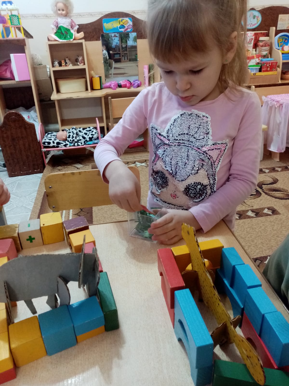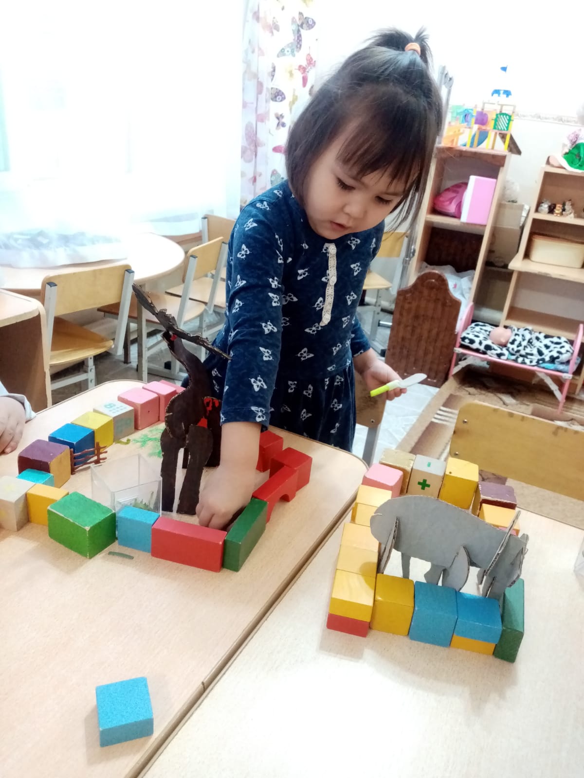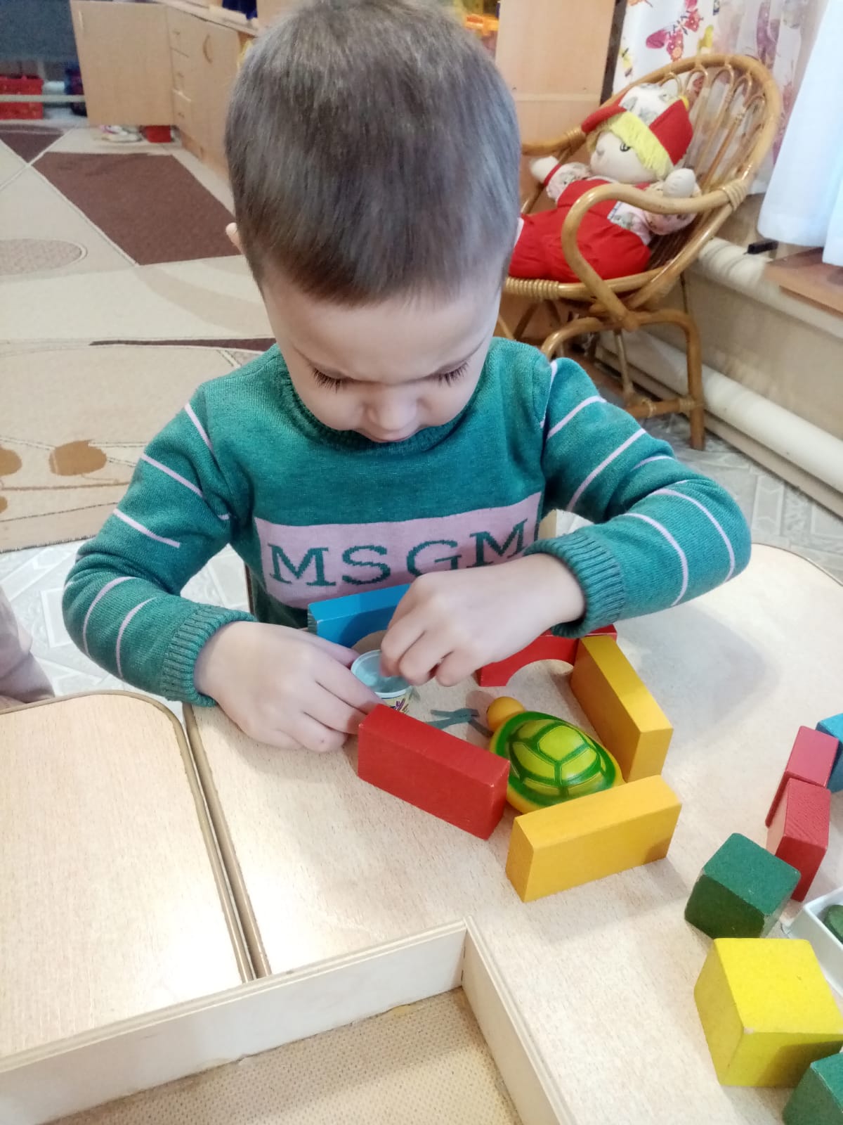 Старшая группа «Шеберлер» КГКП «Ясли-сад №6» акимата города Рудного. Занятие по конструированию с использованием игрушек из гофрированного картона.