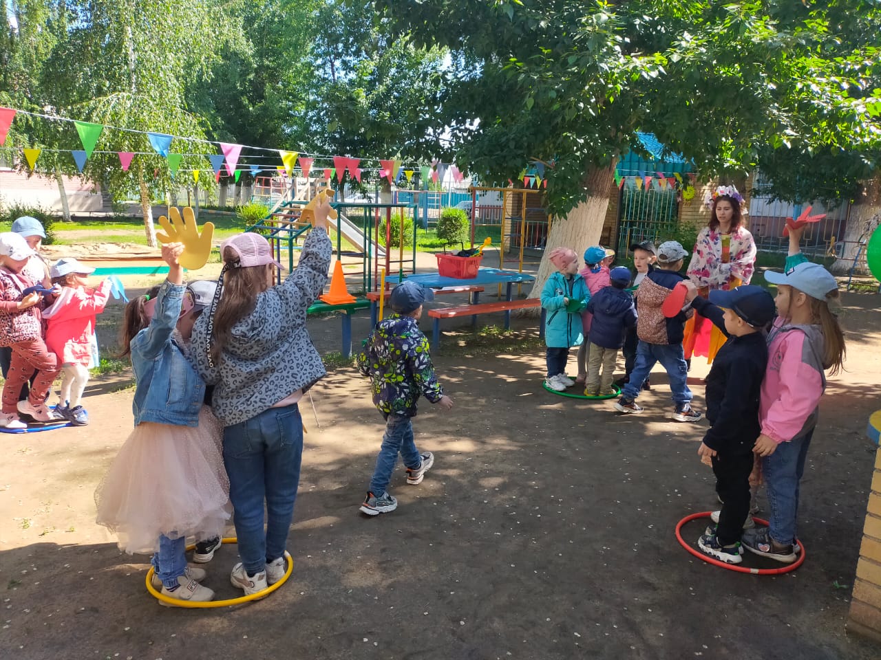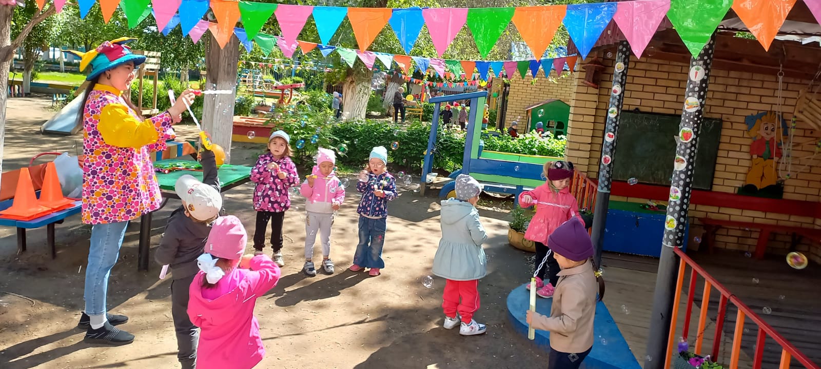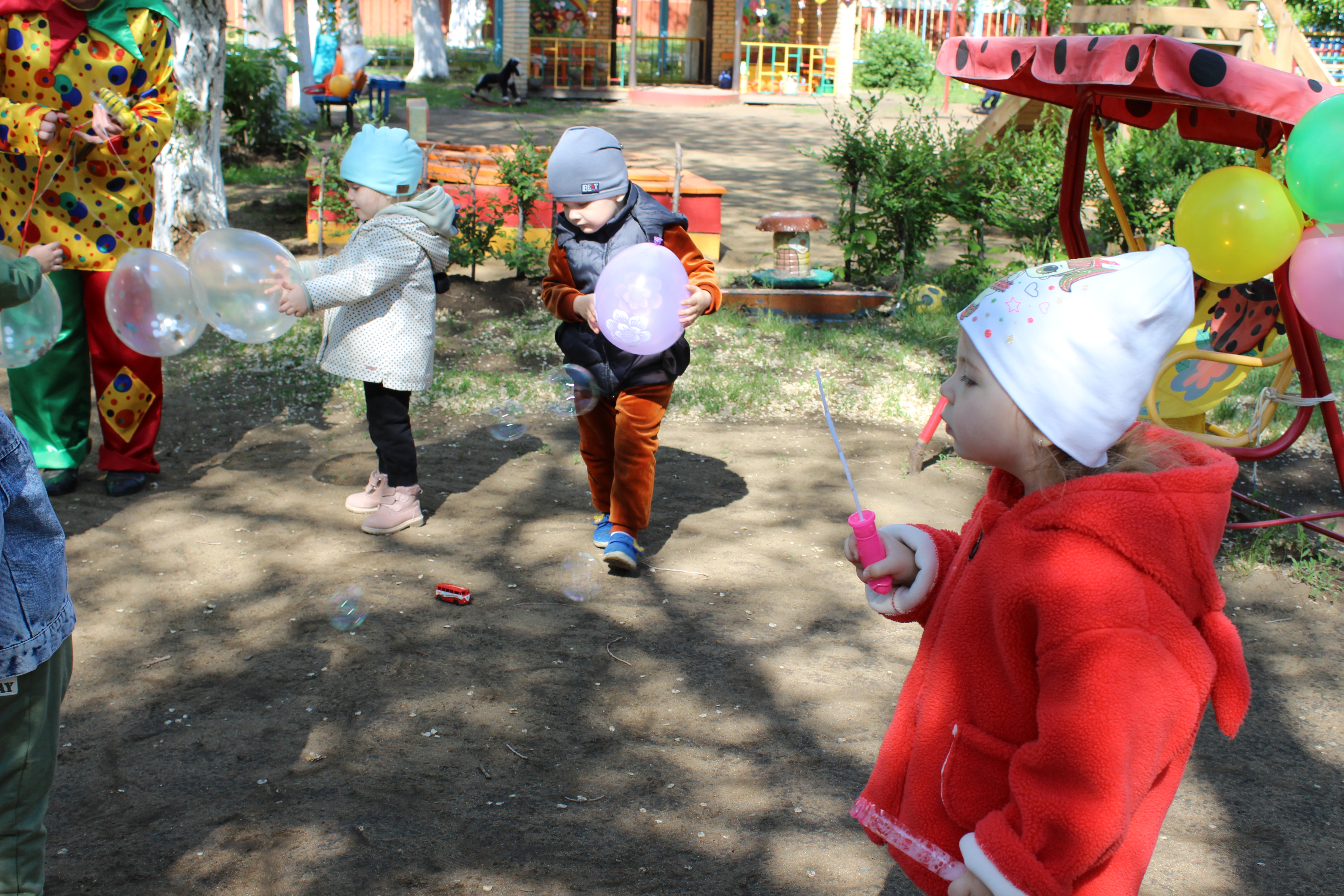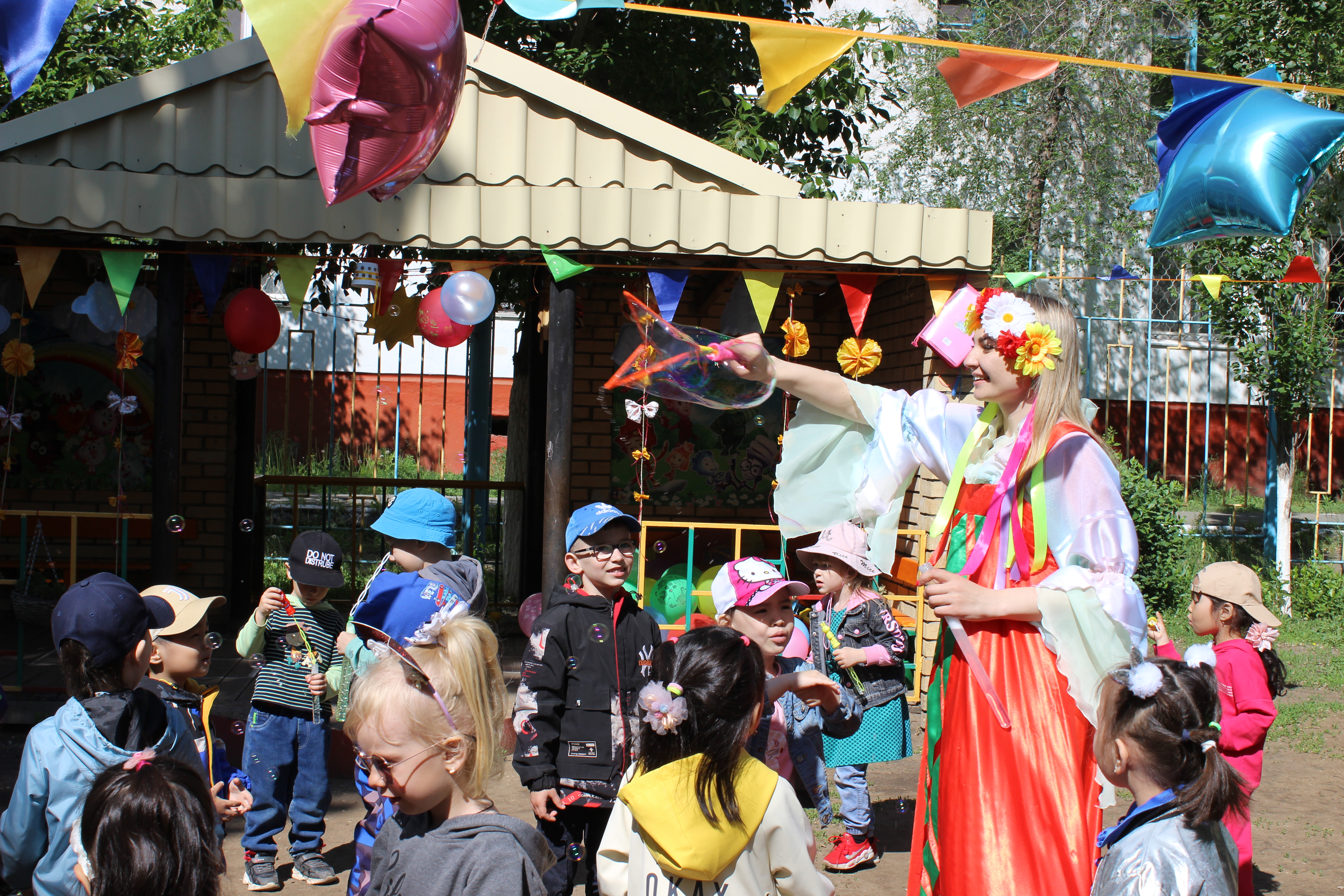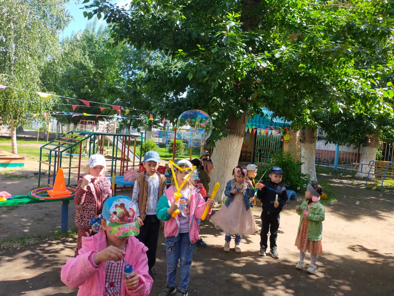 1 июня, по традиции, в нашем детском саду, был подготовлен и проведен праздник для детей «В стране детства». В гости к детям приходил веселый клоун «Клепа», Лето. Вместе с клоуном ребята участвовали в играх, необычных эстафетах, читали стихи про безоблачное детство, пели песни про спорт и дружбу, танцевали. Еще к ребятам приходило Лето приносило волшебную коробочку интересными загадками, и заданиями. Лето подарило детям разноцветные мелки, воздушные шары, и мыльные пузыри.