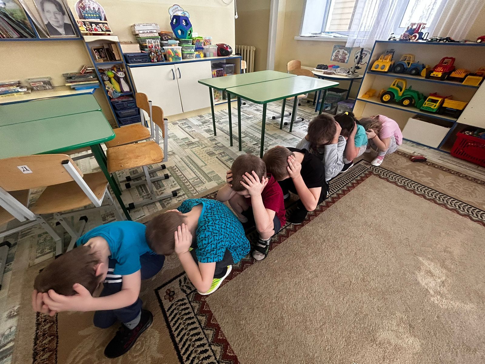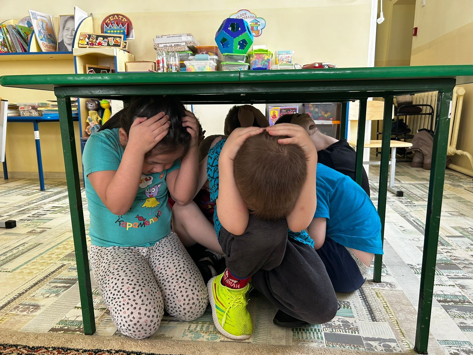 Ребята быстро усвоили материал, особенно после просмотра мультфильма, в котором герои в стихах, на доступном «детском» языке рассказали о том, как вести себя при землетрясении. Затем дети быстро, без промедлений, правильно заняли безопасные места в группе: спрятавшись под столы и встав в дверные проемы.